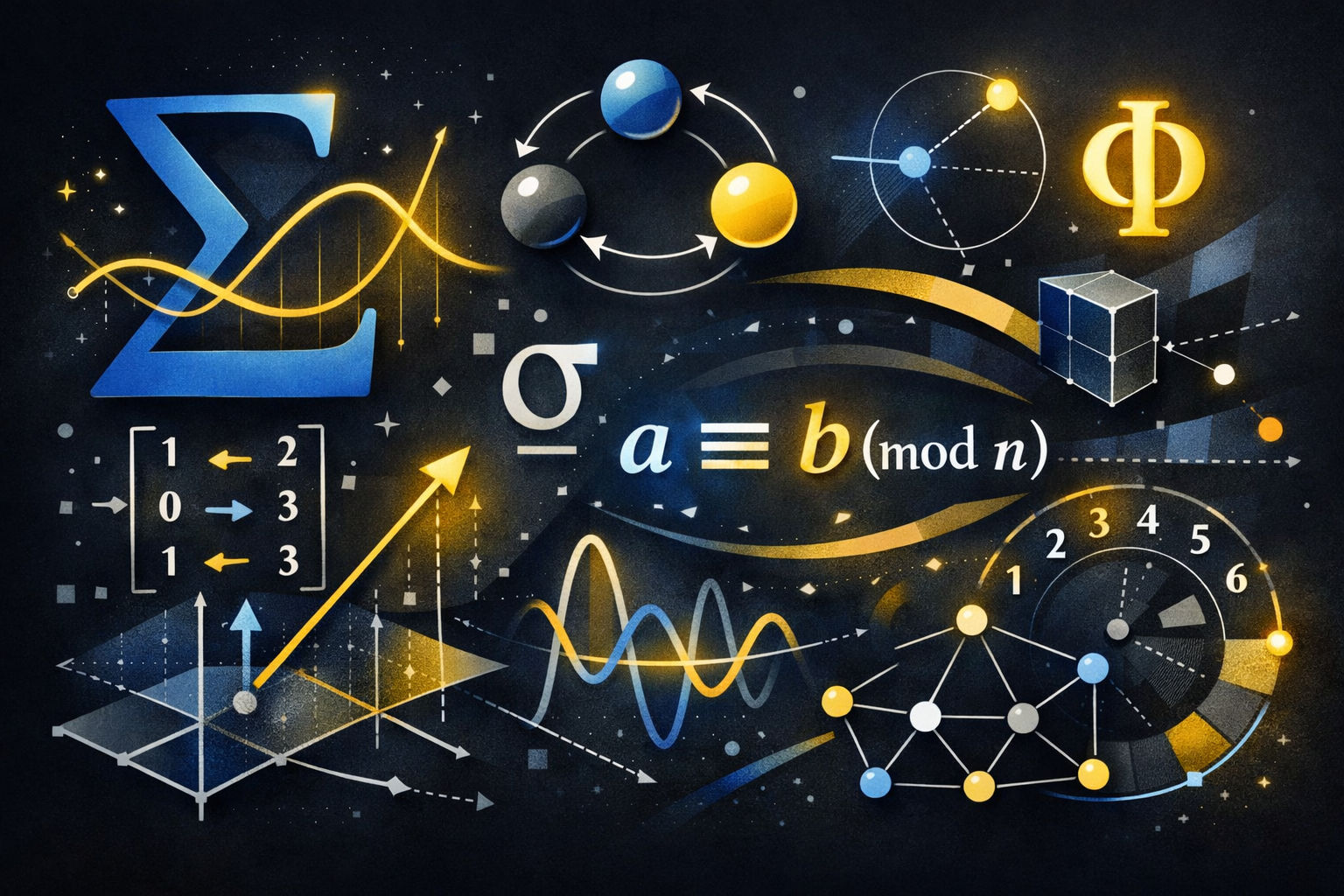 Algebra studies structure through symbols and operations. It replaces specific numbers with relations, rules, and transformations that remain valid across entire classes of objects.