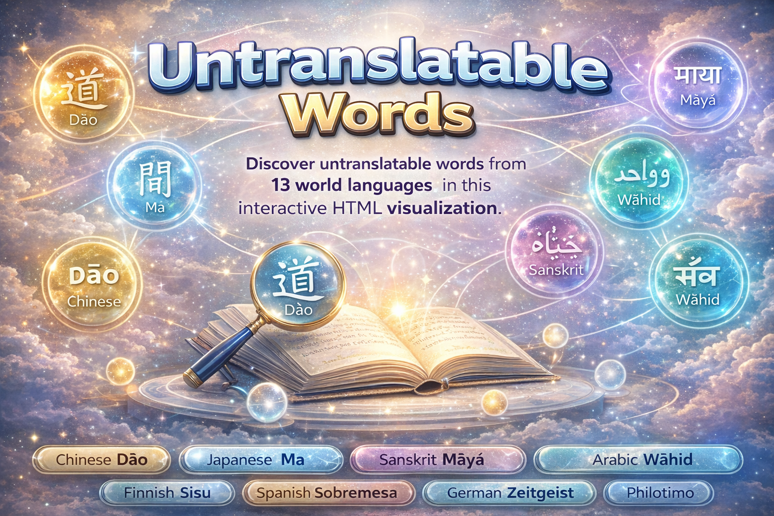 Discover how fundamental concepts evolve across languages and cultures, revealing unique patterns of thought and expression through animated visualization.