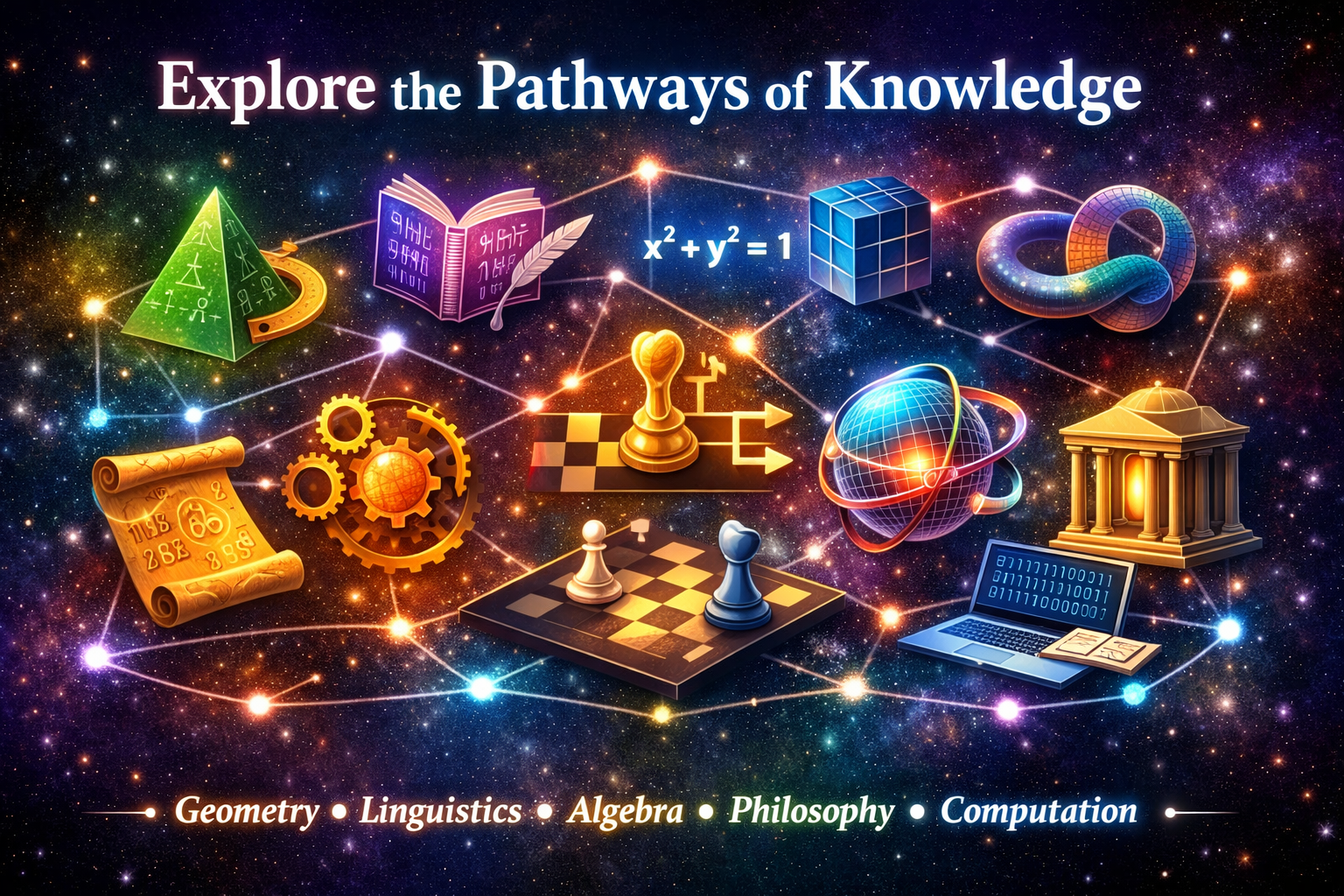 Follow each stage to explore linguistic and mathematical synthesis modules.