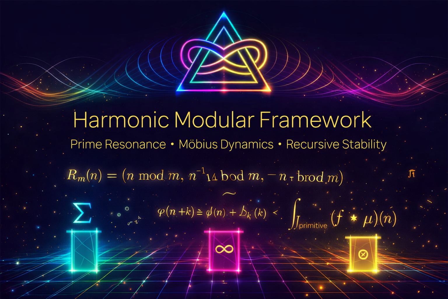 Modular arithmetic binds systems via residue spaces. Prime modulations act like harmonic scaffolding,