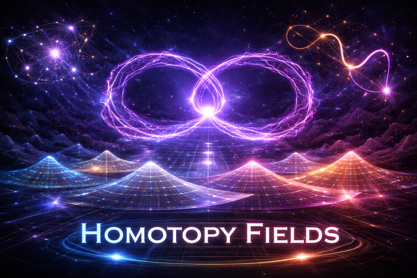 This flow visualizes two loops twisting around each other in continuous transformation. The smooth braiding illustrates homotopic motion β€” both loops remain path-connected, showing that their topological identity is unchanged. Such braids relate directly to the algebraic structure of the fundamental group.
